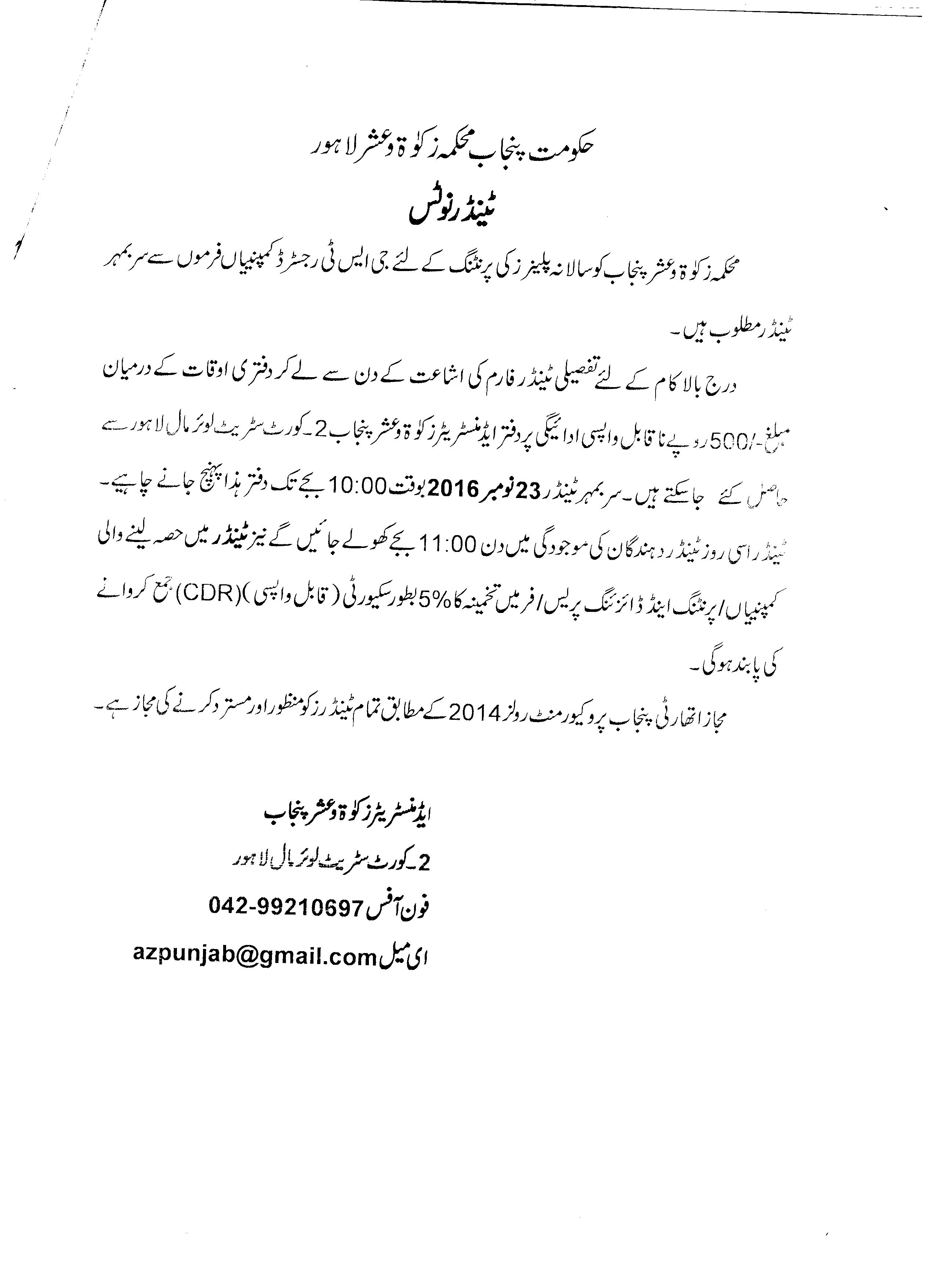 | Tender For the Disbursment of Stipends among Mustahqeen-e-Zakat students of Educational institutions. | 08-12-2015 | 28-12-2015 | Closed | |||